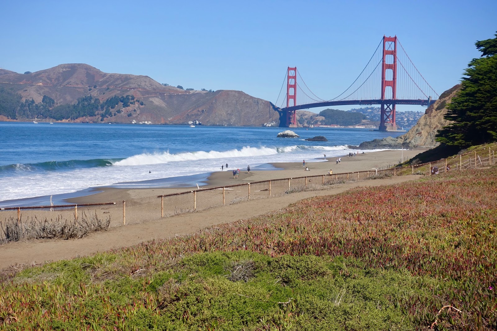 Shortly afterwards, you arrive at the Presidio and it is already time for another spectacular view of the GGB, now from Baker Beach (5).
